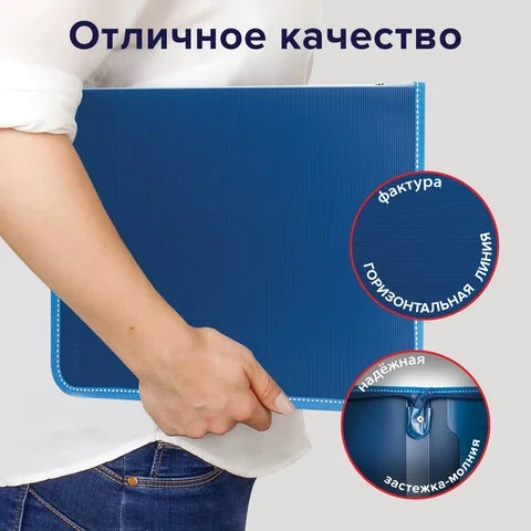 Отзывы о «Пластиковая папка на молнии Brauberg Contract синяя, А4, 500мкм»