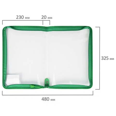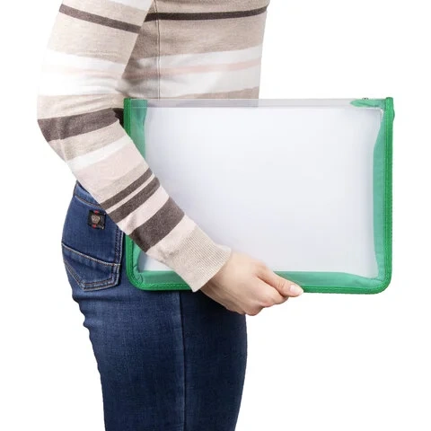 Изготовлена из прочного прозрачного пластика толщиной 0,5 мм с диагональной фактурой. Формат А4 (325х230 мм). Надежный замок-молния защищает документы от механических повреждений, а также пыли и влаги. Цвет молнии - ассорти (поставляется без возможности выбора).