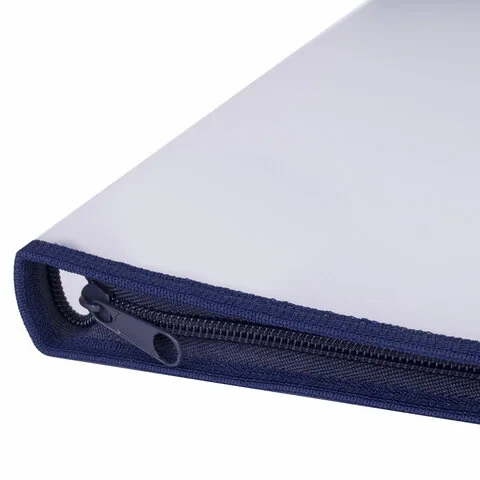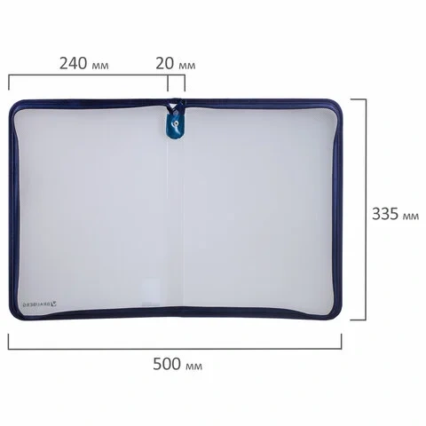Изготовлена из прочного прозрачного матового пластика толщиной 0,5 мм с диагональной фактурой. Формат А4 (335х240 мм). Надежный замок-молния защищает документы от механических повреждений, а также пыли и влаги. Цвет молнии - синий.