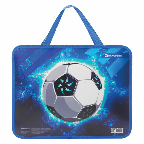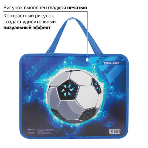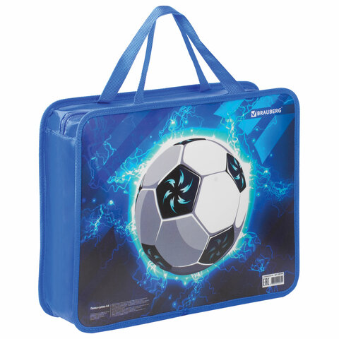 Пластиковая папка на молнии Brauberg Футбол, А4, с ручками