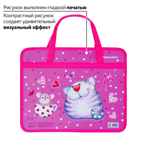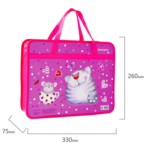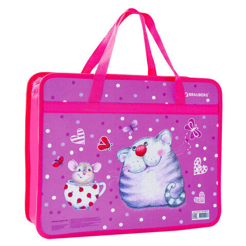 Пластиковая папка на молнии Brauberg Кошка и мышка, А4, с ручками