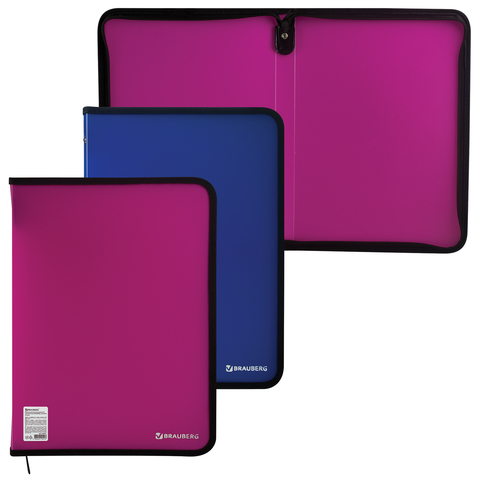 Пластиковая папка на молнии Brauberg неоновая ассорти, А4, 226037, объемная