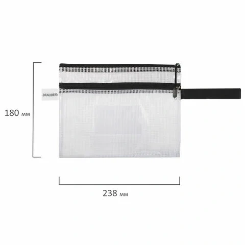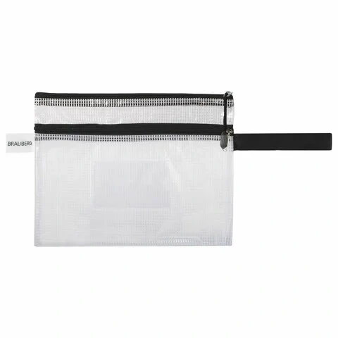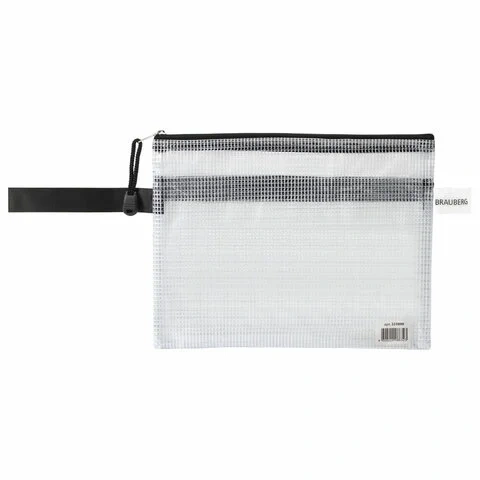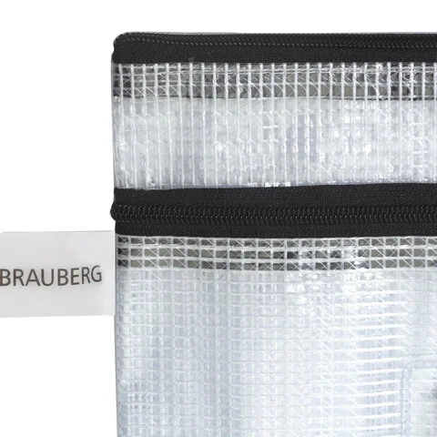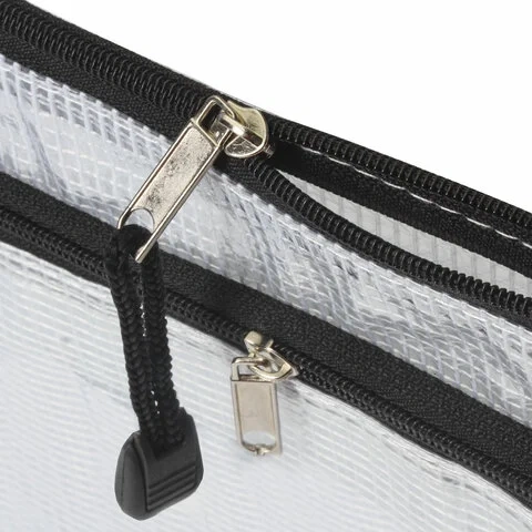Изготовлена из прочного прозрачного пластика толщиной 0,3 мм с сетчатой фактурой и имеет 2 отделения. Формат А5 (238х180 мм). Герметичная застежка-молния защищает документы от механических повреждений, а также пыли и влаги. Цвет молнии - черный.
