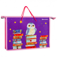 Пластиковая папка на молнии Brauberg Сова на книгах, А4, с ручками