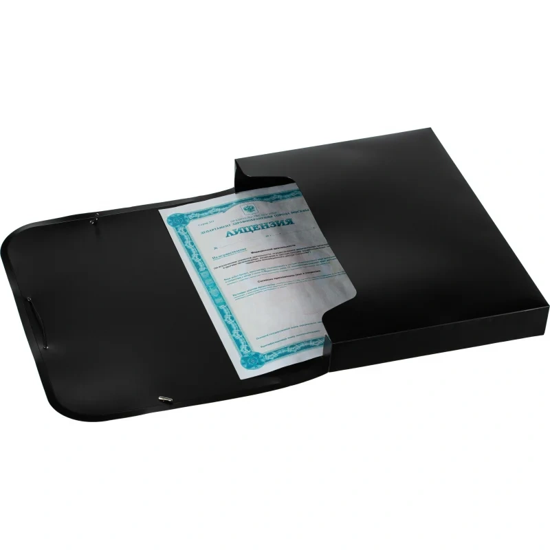 Папка-короб на двух резинках Attache формата А4 изготовлена из пластика, толщиной 0,45 мм, черного цвета. Для удобного хранения и транспортировки документов. Ширина корешка — 40 мм. Вмещает до 350 листов стандартной плотности.