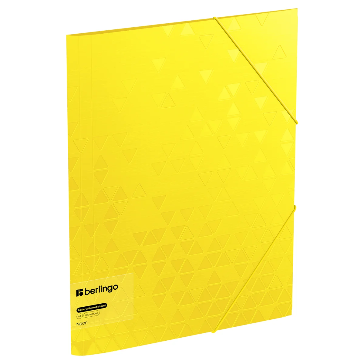 Папка изготовлена из высококачественного полипропилена с матовой текстурой поверхности «рельефные треугольники», на которой не видно отпечатков пальцев и мелких царапин. Толщина обложки 600 мкм. Надёжные застёжки-резинки помогают избежать повреждения документов и легко открываются. Яркий жёлтый неоновый цвет поможет поднять настроение в серые рабочие будни. Упакована в индивидуальный прозрачный пакет по форме.