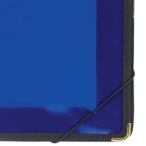 Папка на резинках формата А4 изготовлена из полупрозрачного пластика с диагональной фактурой плотностью 600 мкм и тканевой окантовкой. Клапаны надежно удерживают документы внутри, не позволяя им выпасть и потеряться, а резинки, расположенные на углах, плотно закрывают папку. Резинки являются надежными фиксирующими элементами. Их прочность позволяет сохранять качество после огромного количества растяжений. Эти фиксаторы позволяют за несколько секунд достать и уложить нужный документ. Папка способна вмещать до 500 листов стандартной плотности, что делает ее универсальной как для транспортировки, так и для долгосрочного хранения документов.