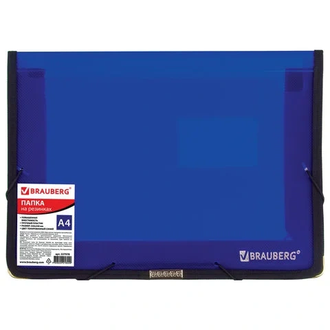 Пластиковая папка на резинке Brauberg А4, до 500 листов, синяя