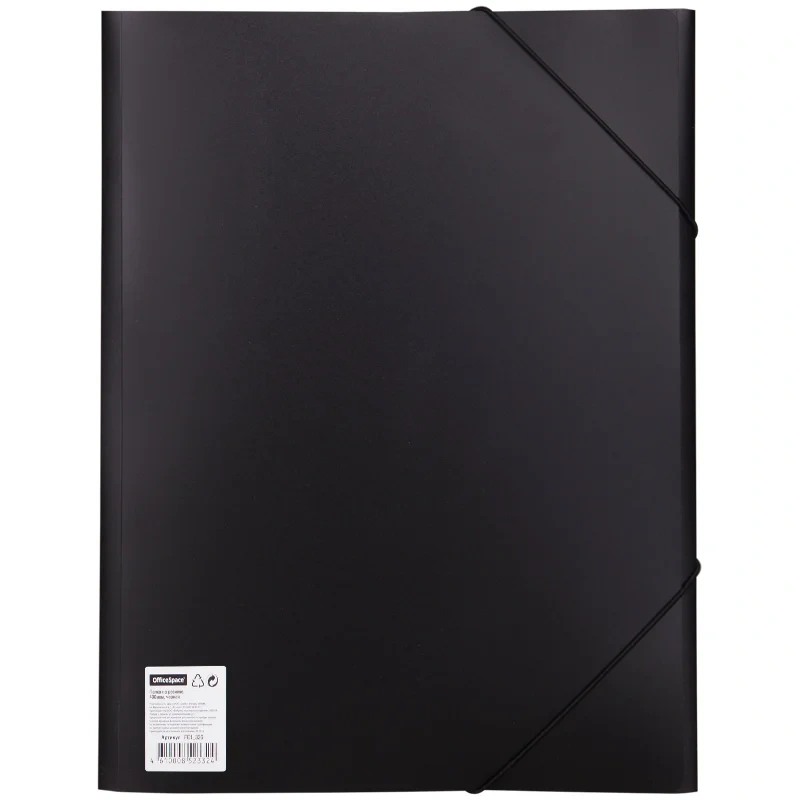 Папка на резинке OfficeSpace А4, 500мкм, черная, предназначена для хранения и транспортировки документов формата А4. Надежно защищает бумаги от изломов, пыли, влаги. Закрывается с помощью двух эластичных резинок, закрепленных по углам. Свободно помещается в портфеле, кейсе, багаже. Пользуется популярностью в офисе и в повседневной жизни.