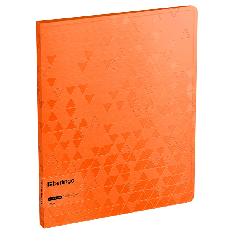 Папка с зажимом Berlingo серии Neon формата А4 – яркий аксессуар для работы и учебы, предназначенный для хранения документов. Вмещает до 150 листов. Папка размером 310*236 мм изготовлена из высококачественного полипропилена толщиной 1000 мкм с текстурой «рельефные треугольники», на которой не видно отпечатков пальцев и мелких царапин. Ширина корешка составляет 17 мм. Изделие имеет надежный и стильный черный зажим. Папка в неоновом оранжевом цвете будет поднимать настроение в течение рабочего дня.