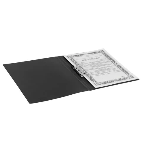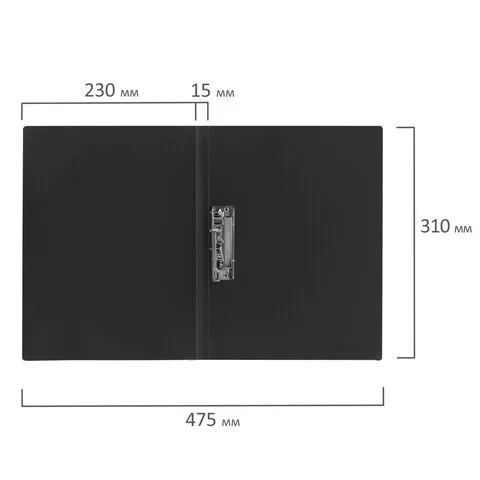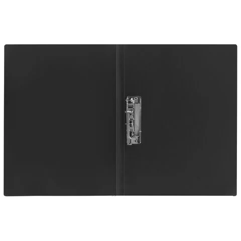 Изготовлена из качественного пластика толщиной 500 мкм с оригинальной фактурой 'песок'. Обеспечивает хранение до 100 листов формата А4. Снабжена боковым прижимом, который обеспечивает надежную фиксацию документов. Размер - 230х310 мм. Выполнена в черном цвете. Поставляется в индивидуальной упаковке.