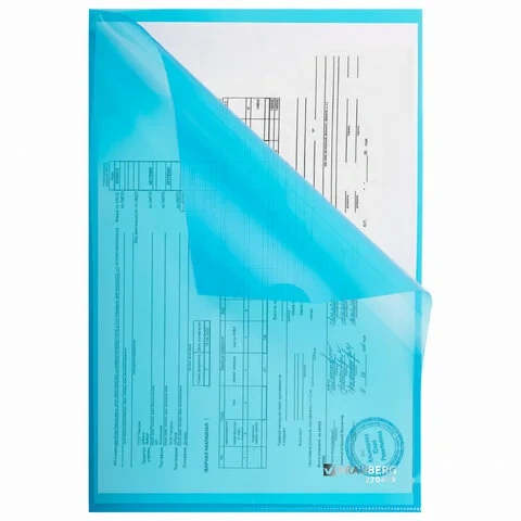 Папка-уголок Brauberg синяя, A4, 100мкм