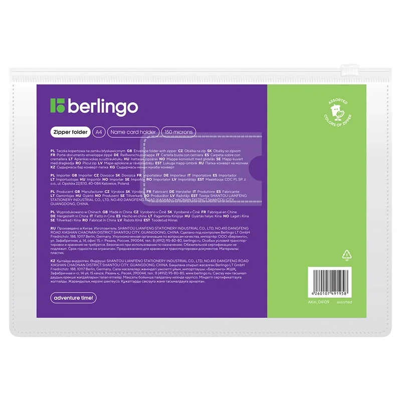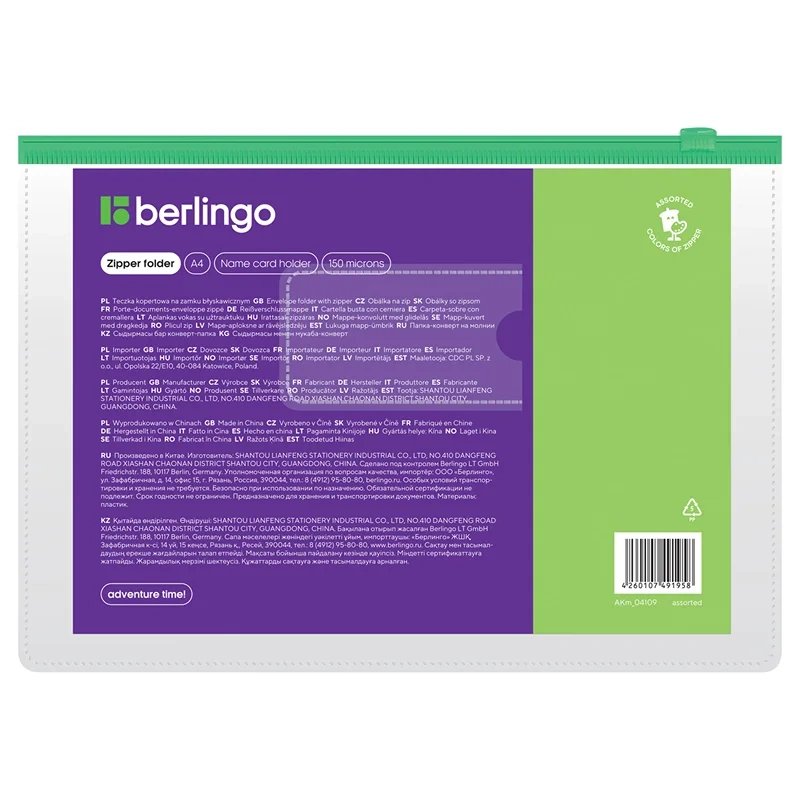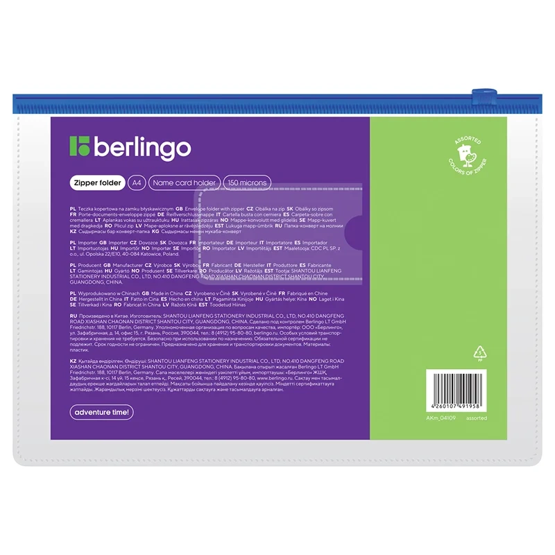Пластиковая папка на молнии Berlingo ассорти, А4