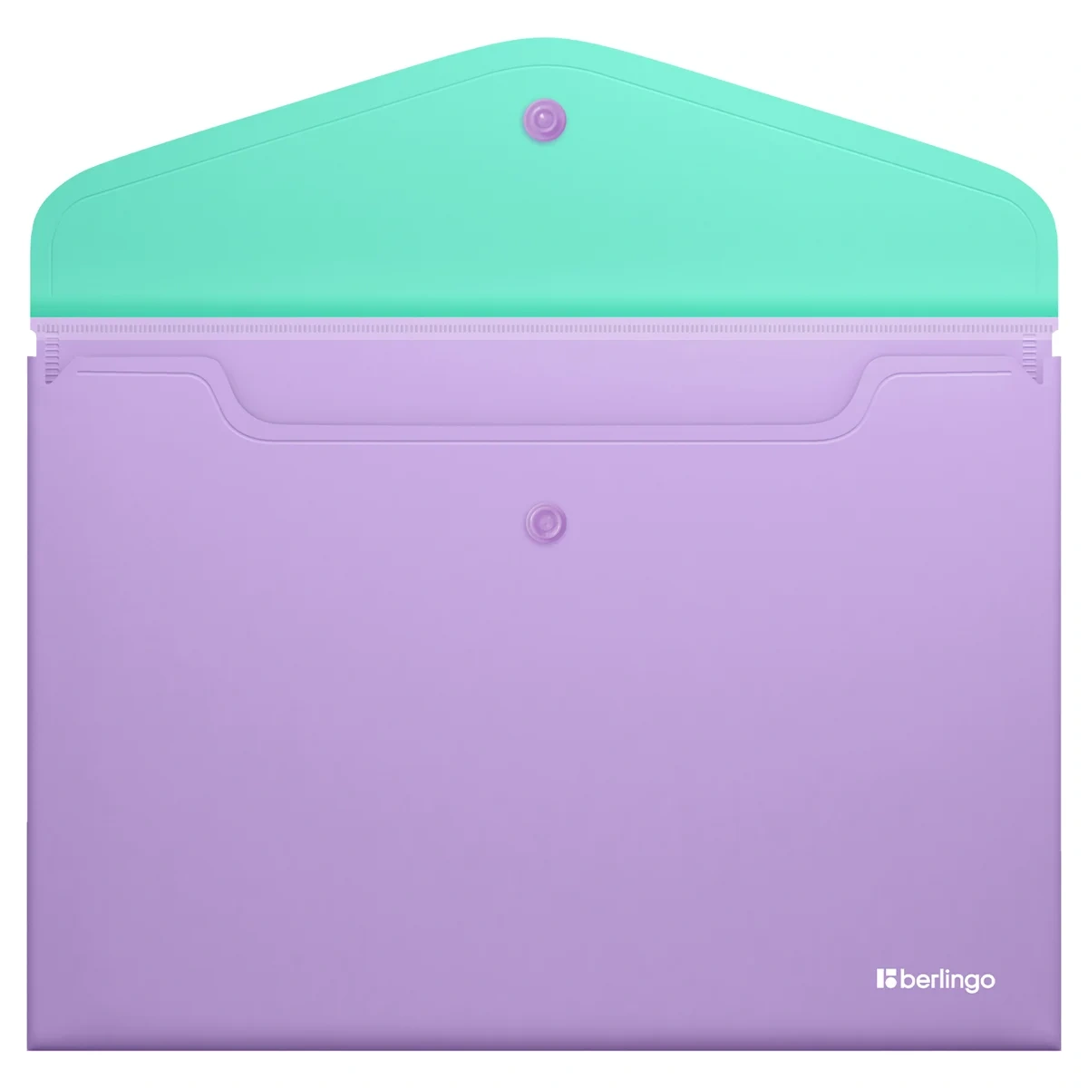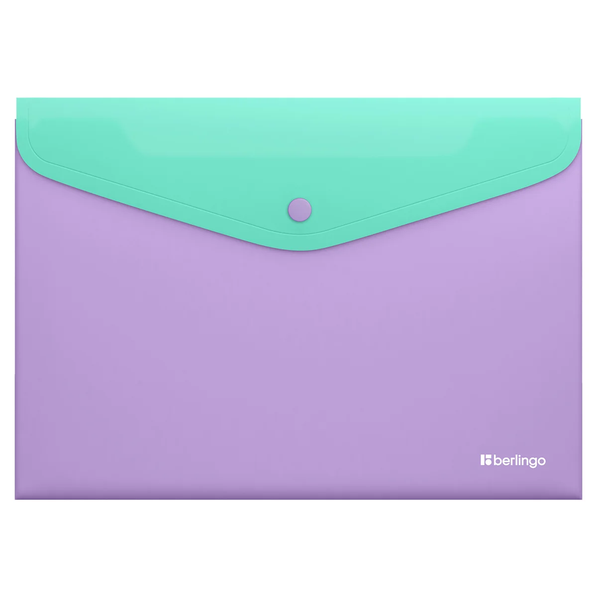 Папка-конверт на кнопке Berlingo 'Haze' А4, 200мкм, софт-тач, с цветным клапаном, мятная/сиреневая