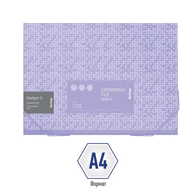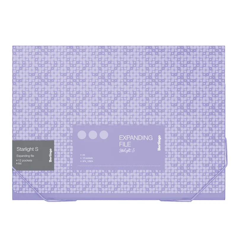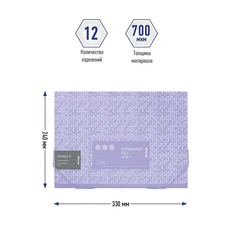 Папка на резинке, 12 отделений Berlingo 'Starlight S' A4, 230*335*35мм, 700мкм, фиолетовая, c рисунк