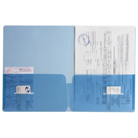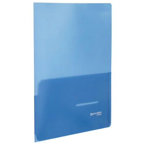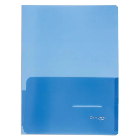 Папка-уголок Brauberg синяя, А4, 180мкм, с 2 карманами, 224883