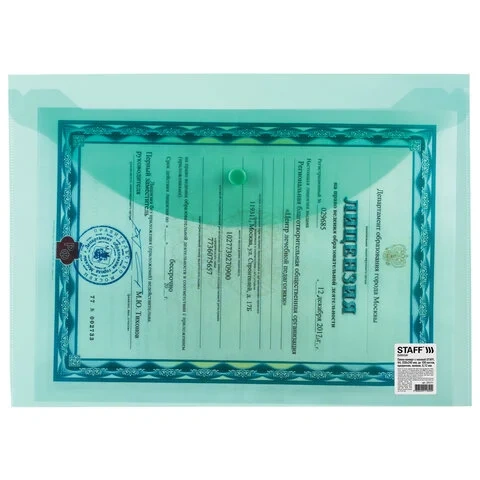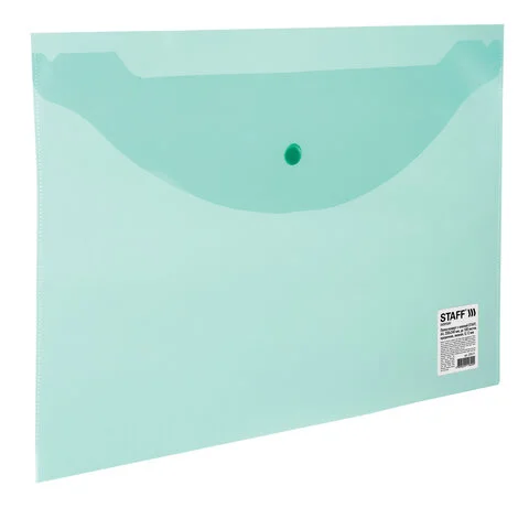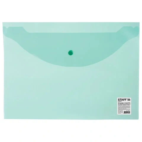 Пластиковая папка на кнопке Staff зеленая прозрачная, А4