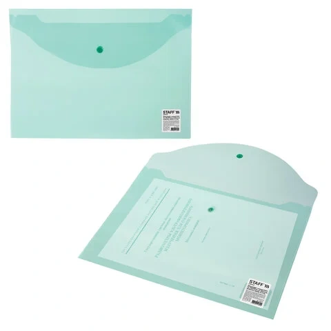 Папка-конверт с кнопкой BRAUBERG 'Pastel', А4, до 100 листов, непрозрачная, мятная, 0,18 мм, 270477