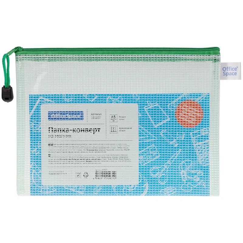 Пластиковая папка на молнии Officespace прозрачная, А5, 250мкм