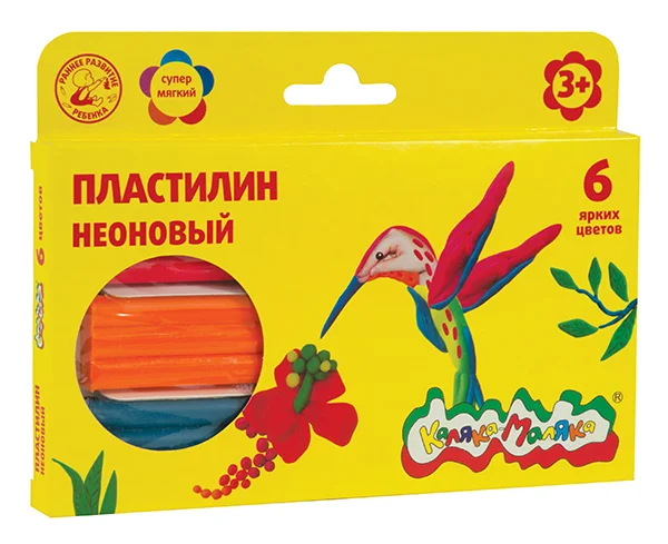 Пластилин Каляка-Маляка разработан для детей в возрасте от 3 до 10 лет. Благодаря повышенной мягкости, легко разминается и меняет форму. Развивает мелкую моторику рук и творческое мышление у детей. Безвреден для детской кожи, имеет яркие неоновые цвета, мягко растягивается и не рвется, прекрасно держит форму. Не окрашивает руки, не прилипает и не оставляет масляных пятен. Без запаха. В набор входит стек. Упаковка изготовлена из прочного картона с европодвесом.