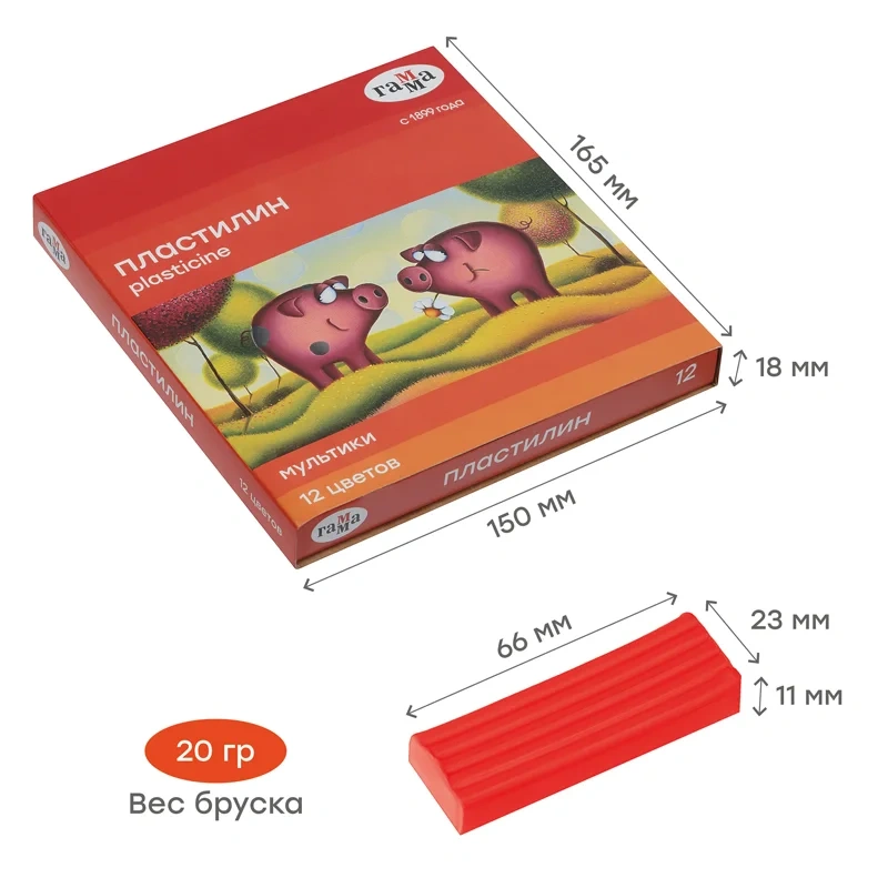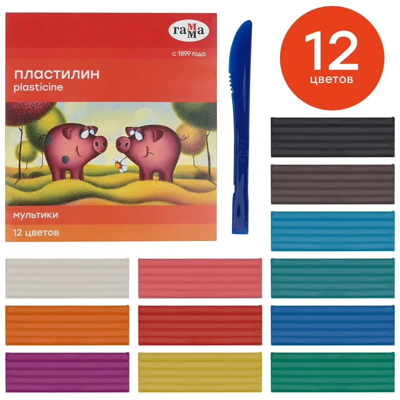 Пластилин Гамма Мультики 12 цветов, 240г, со стеком