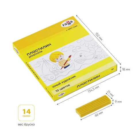 Пластилин ГАММА 'Юный художник NEW', 10 цветов, 140 г, со стеком, 280044