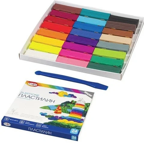 Пластилин классический ГАММА 'Классический', 24 цвета, 480 г, со стеком, картонная упаковка, 281036