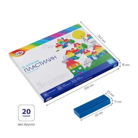 Пластилин классический ГАММА 'Классический', 36 цветов, 720 г, со стеком, картонная упаковка, 281037