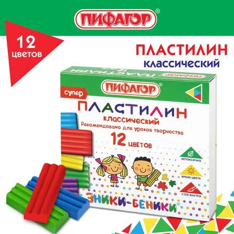 Пластилин классический ПИФАГОР 'ЭНИКИ-БЕНИКИ СУПЕР', 12 цветов, 120 г, стек, 106505