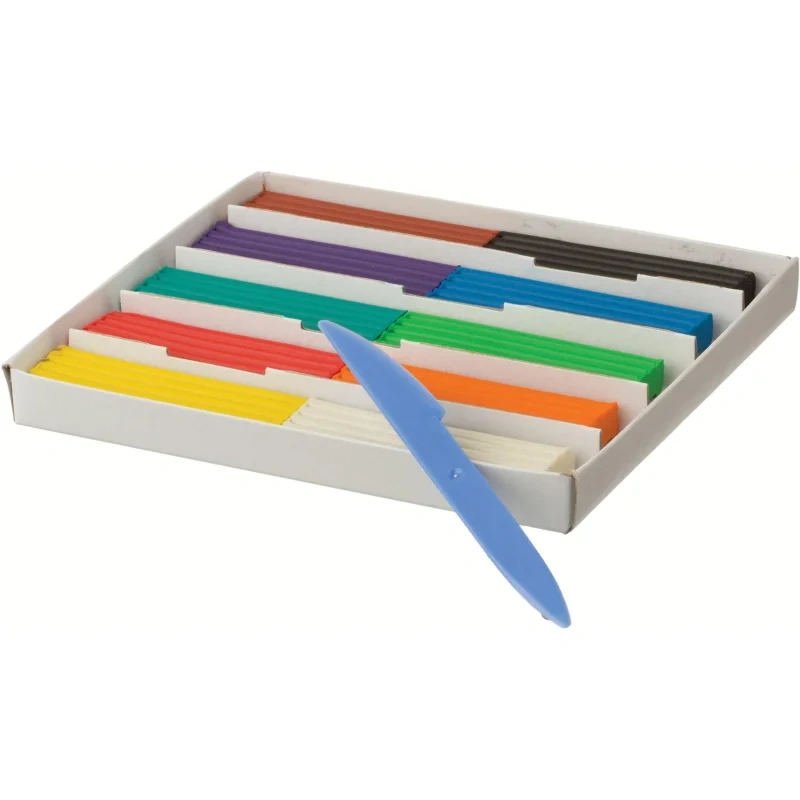 Набор включает 10 цветов: желтый, белый, оранжевый, красный, фиолетовый, салатовый, зеленый, синий, коричневый, черный. Общий вес набора: 200 г, вес одного бруска: 20 г. Упаковка — картонная коробка размером 166×142×18 мм. Производство — Россия.