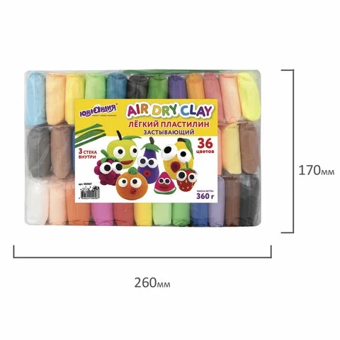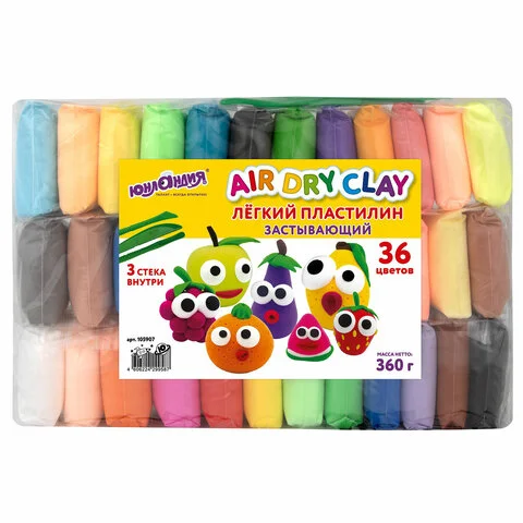 Пластилин супер лёгкий воздушный застывающий 36 цветов, 360 г, 3 стека, ЮНЛАНДИЯ, 105907