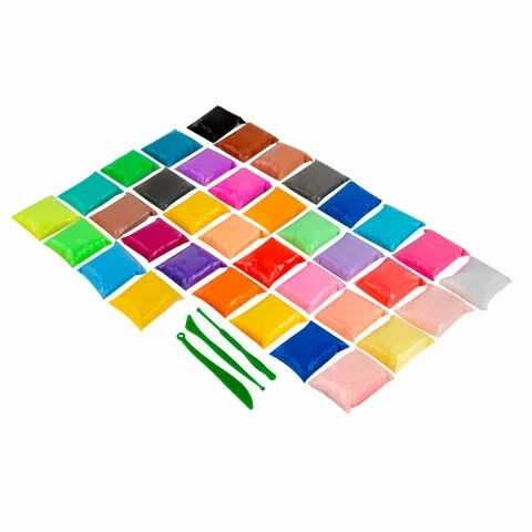 Набор состоит из супер легкого воздушного пластилина высокого качества ярких цветов и стеков, вносящих разнообразие в игры с лепкой. 36 цвета позволят ребенку создать действительно уникальную поделку, миниатюрную скульптуру или картину.
