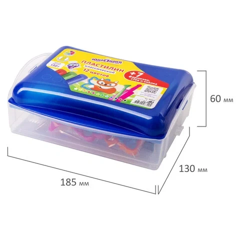 Упаковка - вместительный бокс, в который можно сложить все инструменты и пластилин после окончания лепки.
