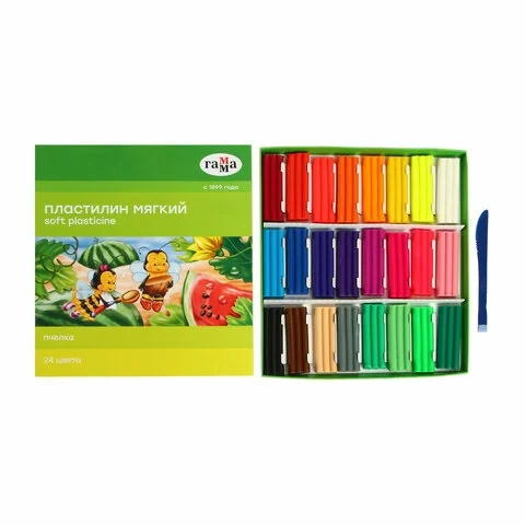 Пластилин восковой ГАММА 'Пчелка', 24 цвета, 360 г, со стеком, картонная упаковка, 190820201