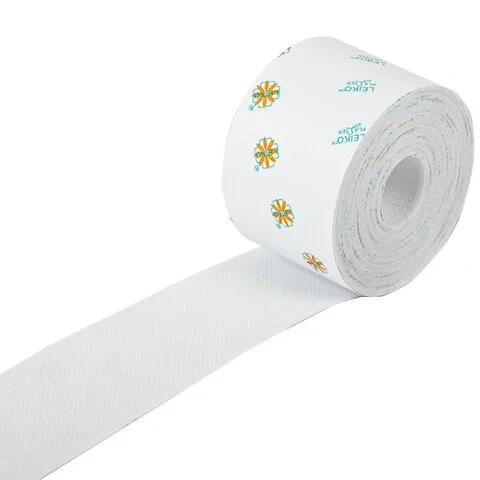 Клеящая поверхность защищена бумагой с продольным волнообразным разрезом, которая легко удаляется, что облегчает работу в перчатках.