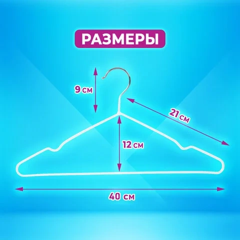 Плечики для одежды Brabix белые р.48-50, металл, антискользящие, 10шт