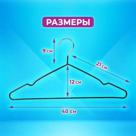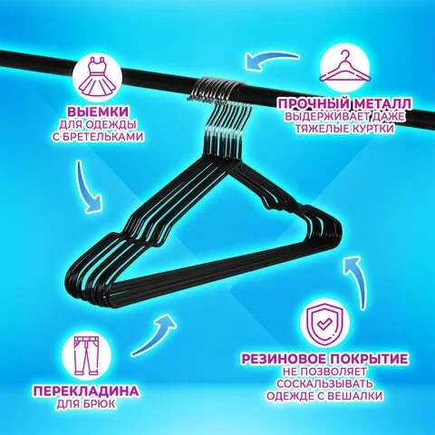 Плечики для одежды Brabix черные р.48-50, металл, антискользящие, 10шт