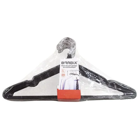 Плечики для одежды Brabix черные р.48-50, металл, антискользящие, 20шт