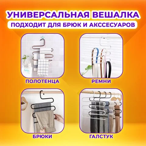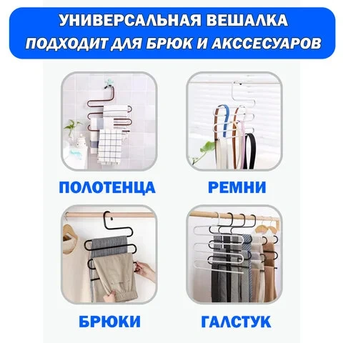 Предлагаем универсальную металлическую вешалку, которая поможет организовать пространство и создаст уют в доме. Вешалки для одежды изготовлены из прочного металла. Многоуровневая вешалка для брюк эстетичной изогнутой формы выдерживает до 6 кг благодаря усиленному металлическому профилю. Она не погнется даже под тяжестью зимних штанов или мокрых полотенец. Пластиковые заглушки на концах не позволят соскальзывать одежде с вешалки, а самому аксессуару с перекладины шкафа.