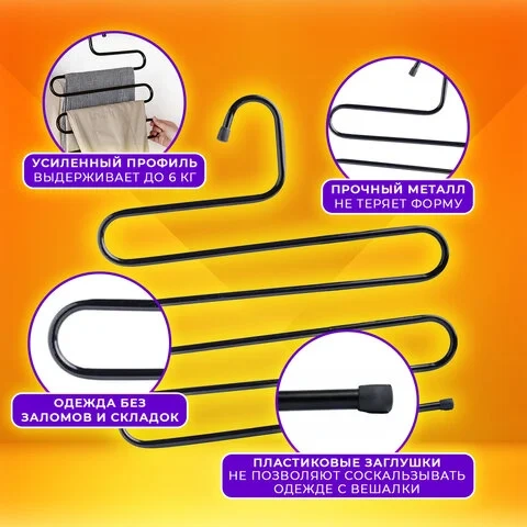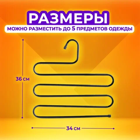 Плечики для одежды Brabix Змейка 5 секций, 34х36 см, черные