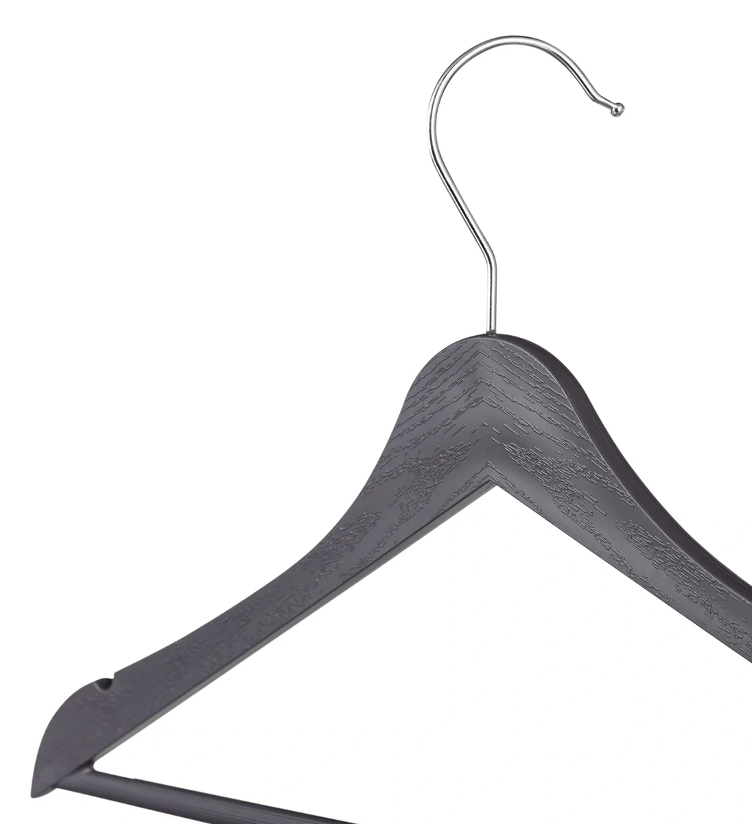 Прочные вешалки для одежды Wood с текстурой под дерево, сочетающие в себе эстетику и функциональность, станут прекрасным дополнением для прихожей или гардеробной. Вешалки оптимального размера 48-50 подойдут для хранения верхней одежды, пиджаков, рубашек, платьев, а благодаря нижней перекладине на вешалке также можно разместить брюки или юбку. Перекладина имеет ребра для предотвращения скольжения одежды и ее падения с вешалки. Специальные выемки позволяют вешать одежду на бретельках и юбки. Крючок поворачивается на 360С для удобного хранения одежды. Вешалки не оставляют зацепок и заноз на одежде. Вешалки изготавливаются из 100% перерабатываемого прочного безопасного полипропилена, не содержат бисфенол А. Крючки изготовлены из нержавеющей стали и не подвержены коррозии.