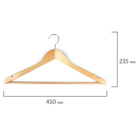 Вешалки изготовлены из натурального дерева. Лакированные, с невыкручивающимся крючком. Предназначены для бережного хранения одежды. Обладают долговечностью и прочностью, не прогибаются под тяжелой верхней одеждой. Эстетичны, отлично вписываются в общий интерьер гардеробной. Размер модели составляет 45 см. 5 штук в комплекте.