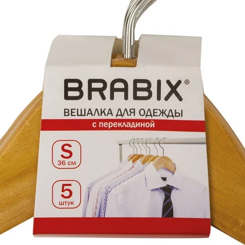 Плечики для одежды Brabix Стандарт 5 шт/уп, 36 см, сосна