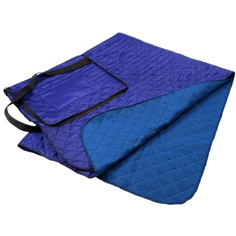 Складной двусторонний плед. Полиэстер с водоотталкивающим покрытием. Поставляется в полиэтиленовом пакете. В поставке возможен незначительный разнотон.