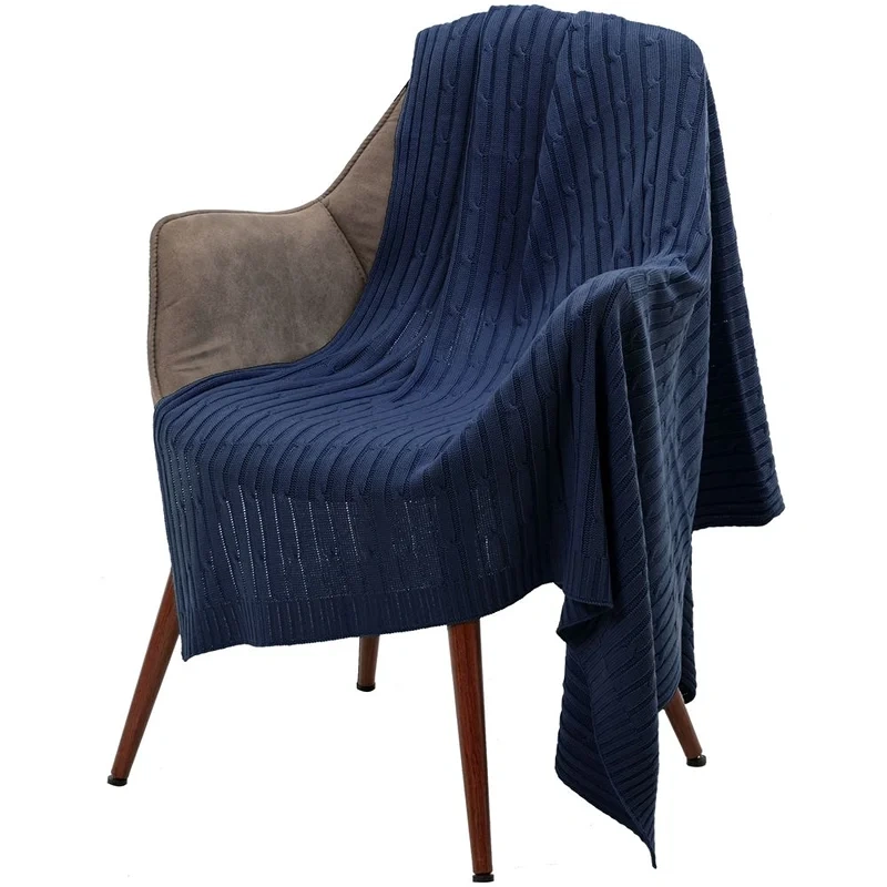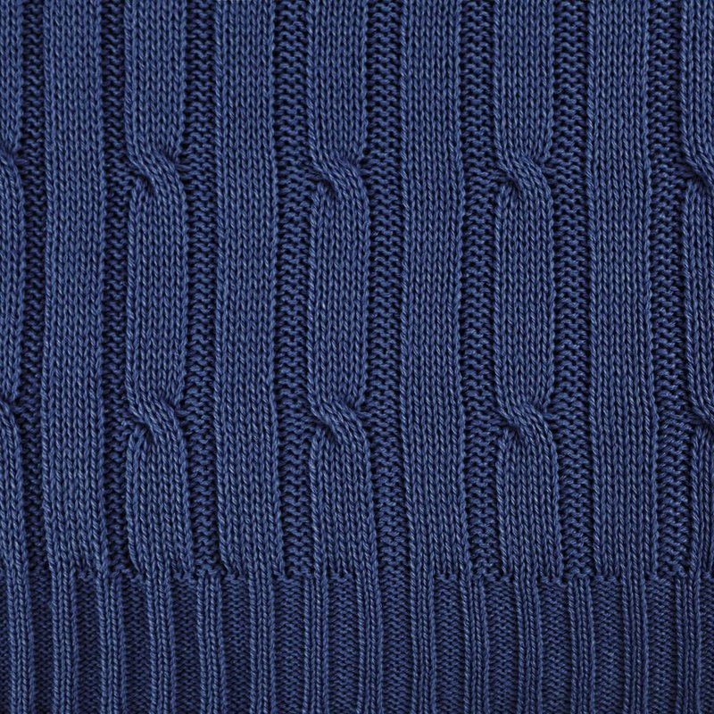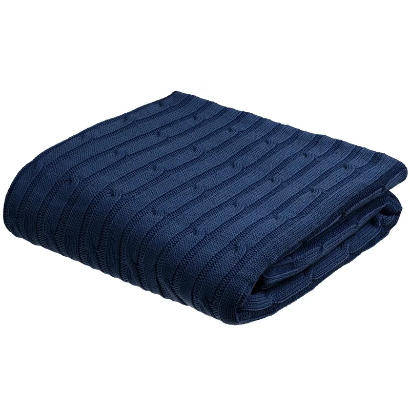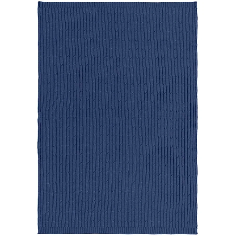 Простота и изысканность сплелись в классическом орнаменте пледа Remit. Немного французского шика для спальни или гостиной. Плед фактурной вязки с косами. Размер: 110х170 см Материал: акрил Цвет: темно-синий, синий