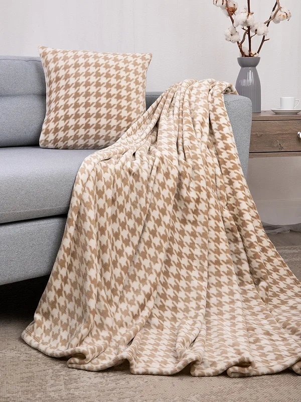 Плед Tessolo Home Пье-де-Пуль микровелюр бежевый, 150 x 200см