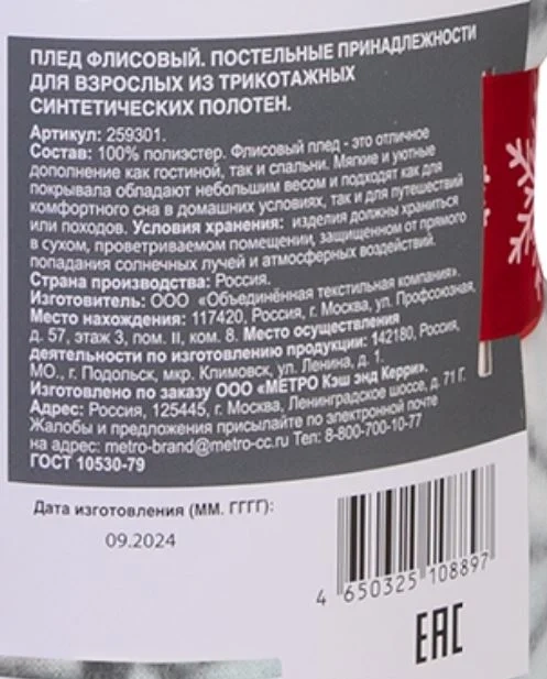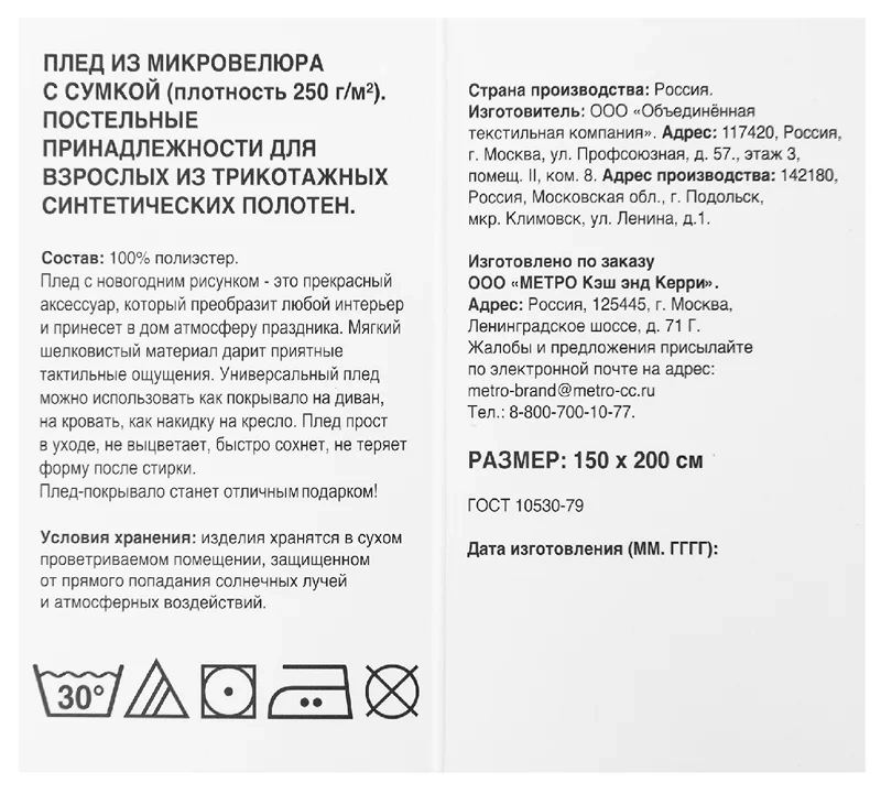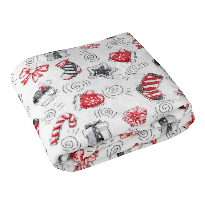 Tarrington House Плед микровелюр с сумкой с принтом Новый год, 150 х 200см