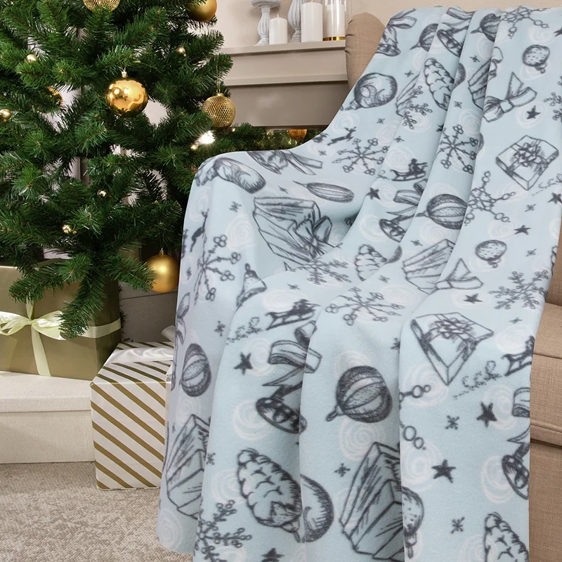 Tarrington House Плед микровелюр с сумкой синий с принтом подарки, 150 х 200см