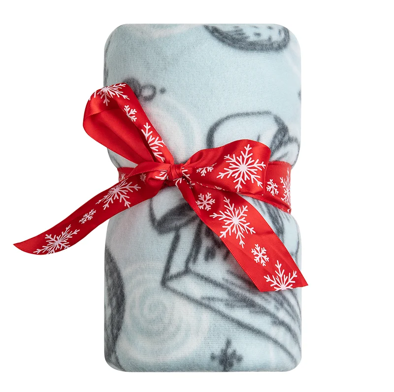 Tarrington House Плед микровелюр с сумкой синий с принтом снеговик, 150 х 200см