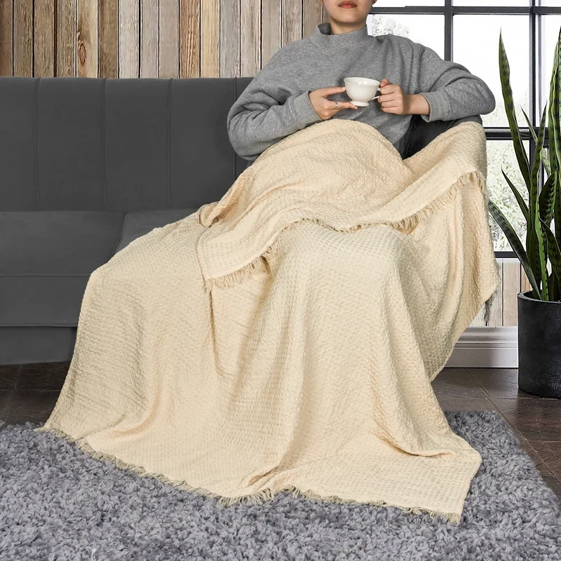 Tarrington House Плед вафельный бежевый из полиэстера, 130 x 170см